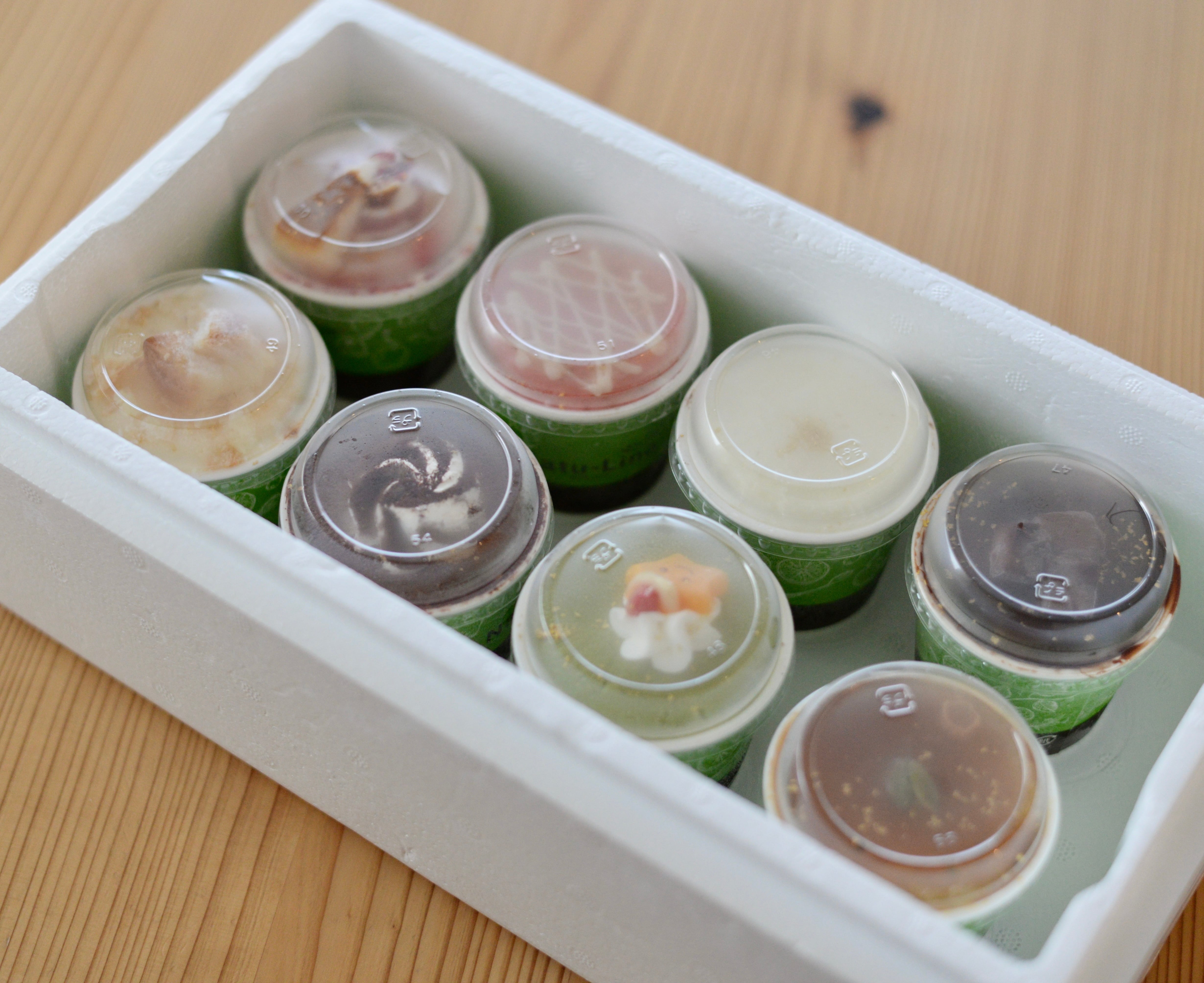 いちご、抹茶、パンプキンキャラメル、アップルパイ、ショコラ、ストロベリーチーズ、ミルク、ティライミス